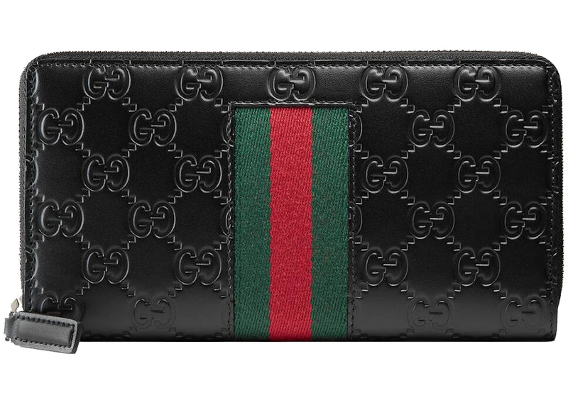 The Gucci Signature Web Zip Around Wallet Black is now available at Side Kicks!