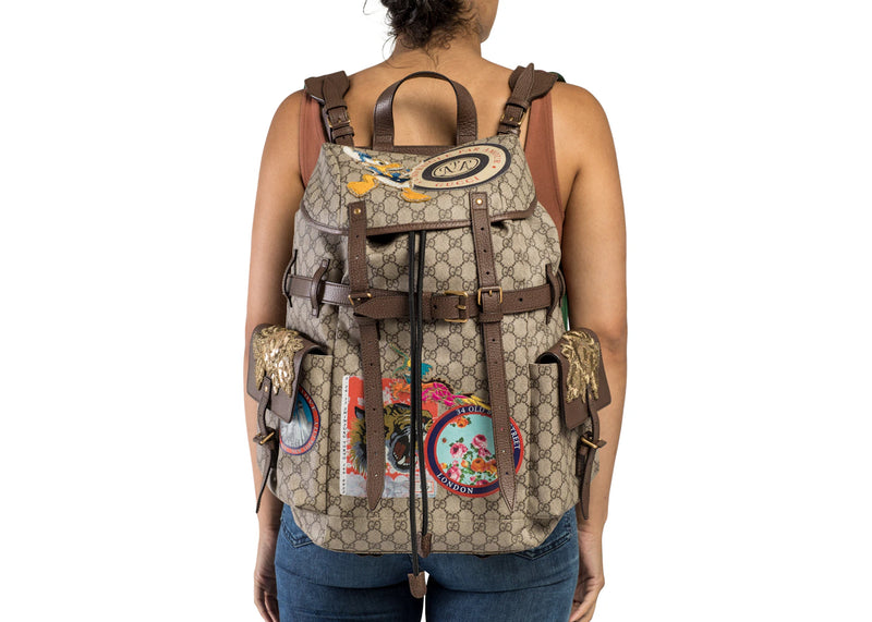 The Gucci Soft Backpack GG Supreme Donald Duck Beige/Ebony is now available at Side Kicks!