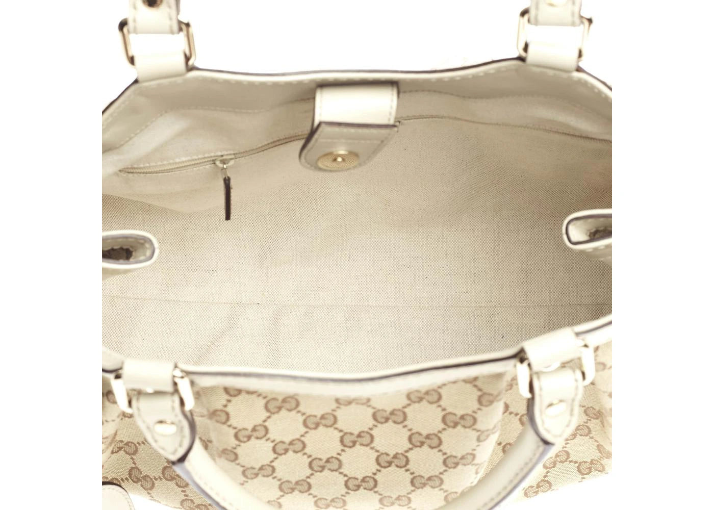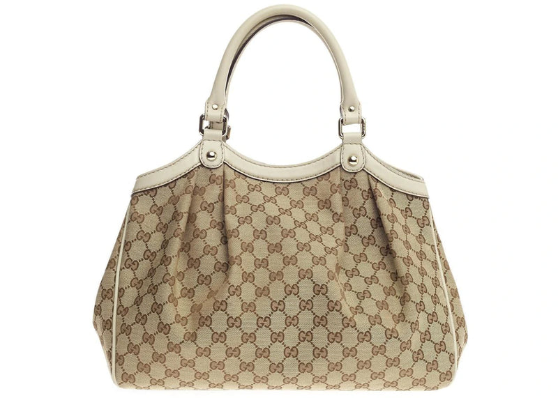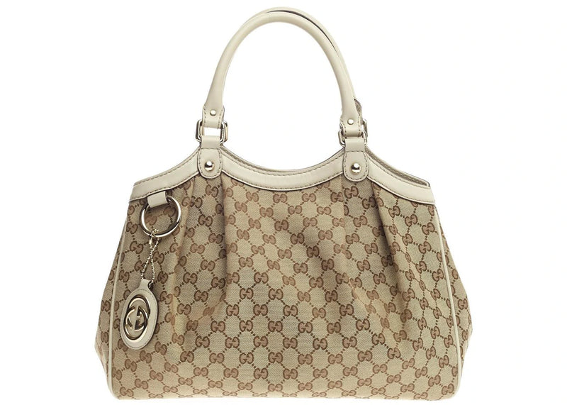 The Gucci Sukey Tote GG Monogram GG Leather Charm Medium Brown/White is now available at Side Kicks!