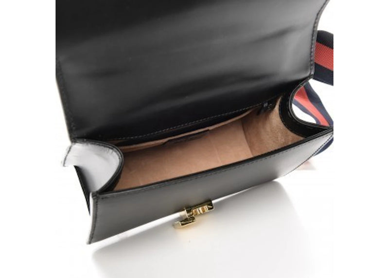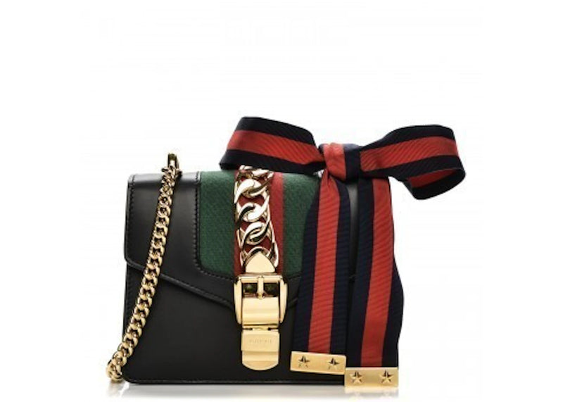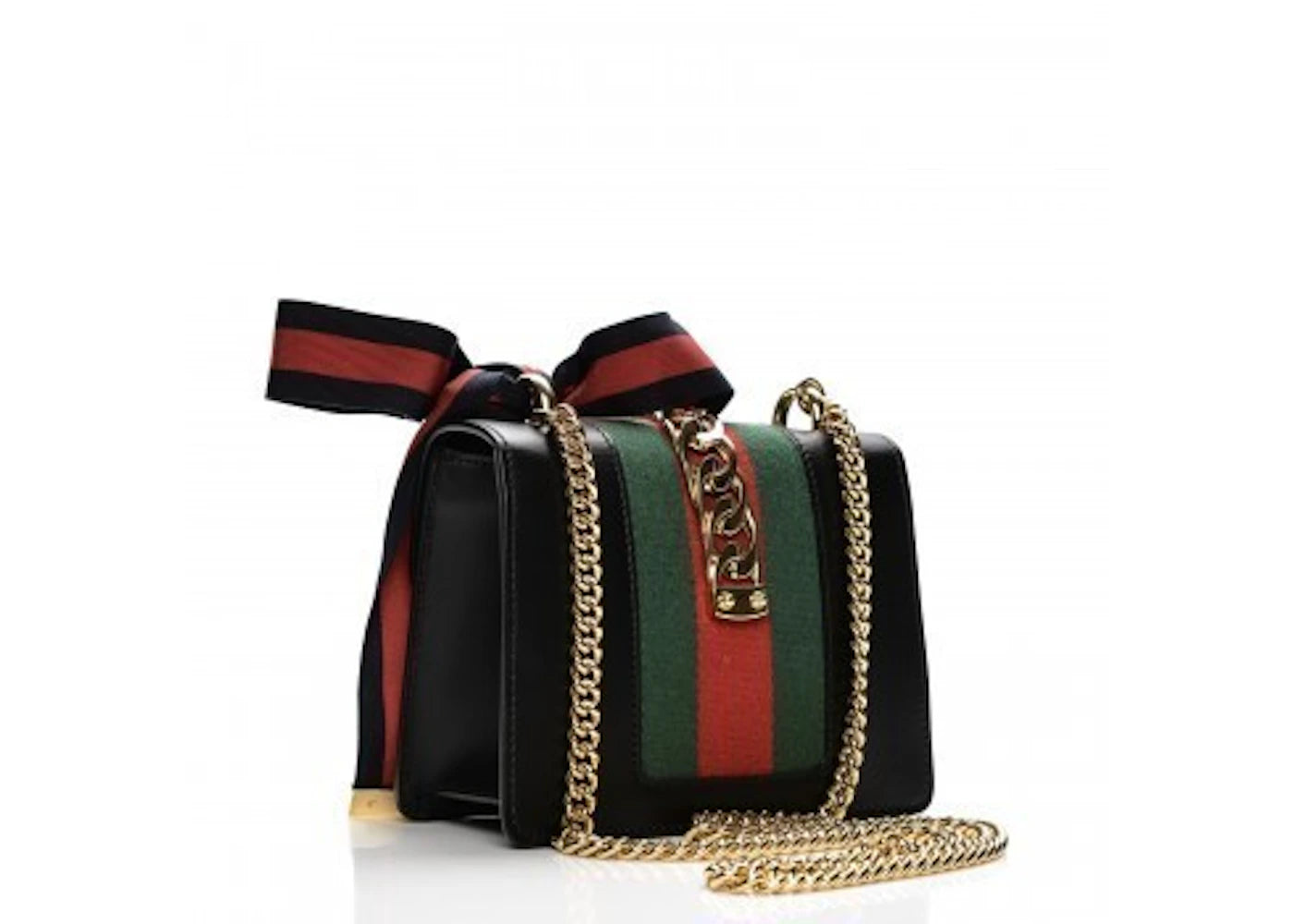 The Gucci Sylvie Shoulder GG Web Stripe Mini Black/Red/Green is now available at Side Kicks!