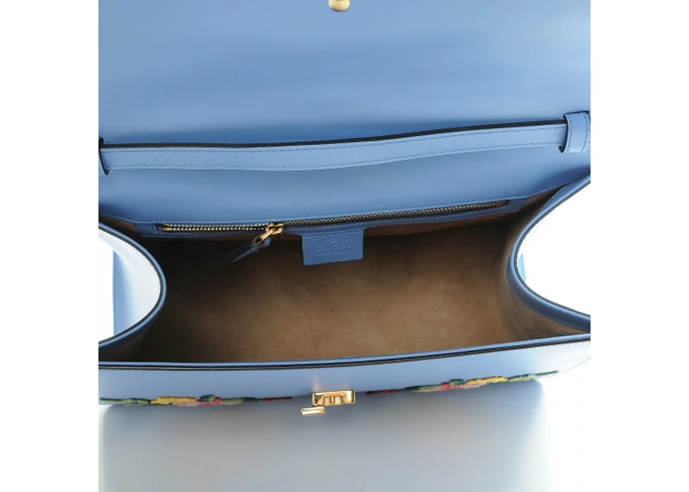 Gucci Sylvie Top Handle Web Embroidered Medium Light Blue/Green/Pink/Red