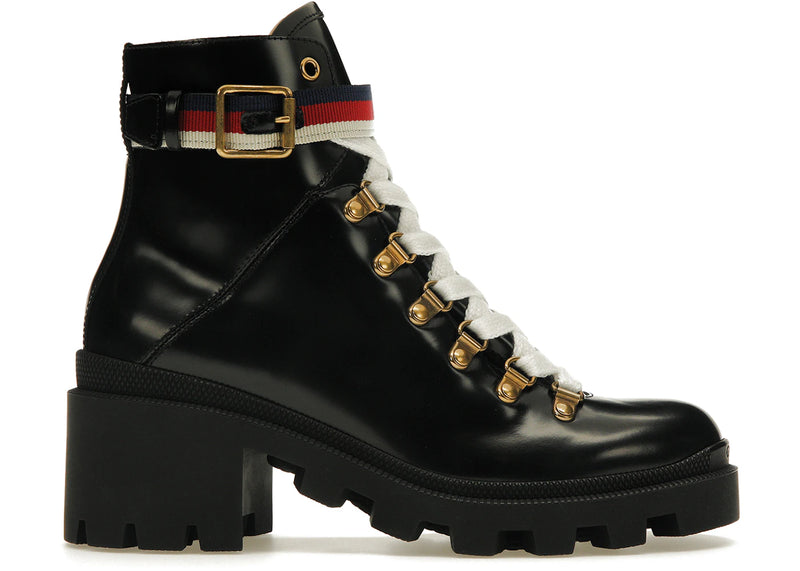 The Gucci Sylvie Web 55mm Ankle Boot Black Leather is now available at Side Kicks!