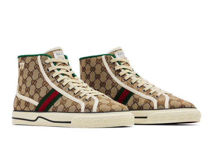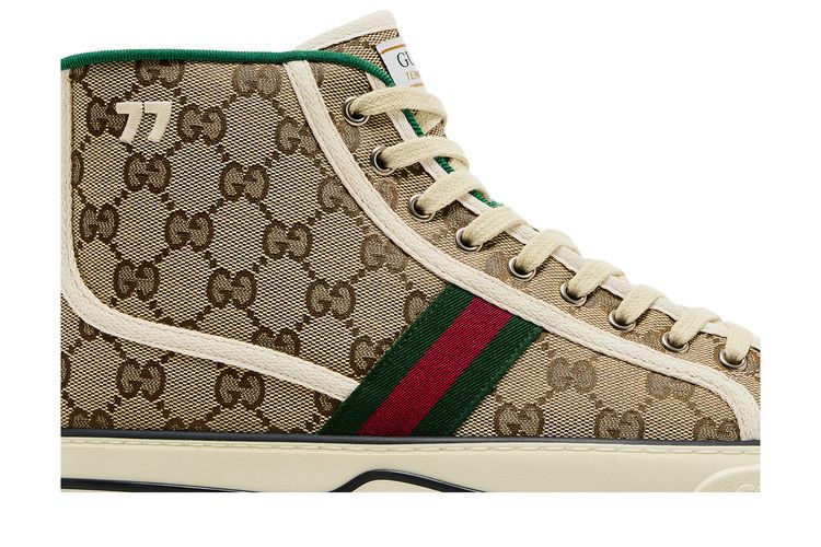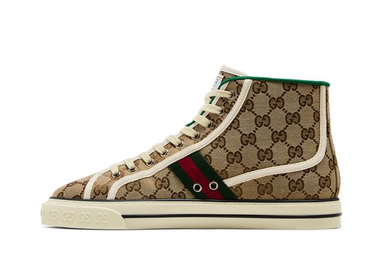The Gucci Tennis 1977 Canvas High Top Beige GG Print is now available at Side Kicks!