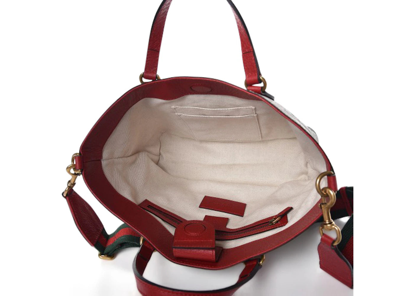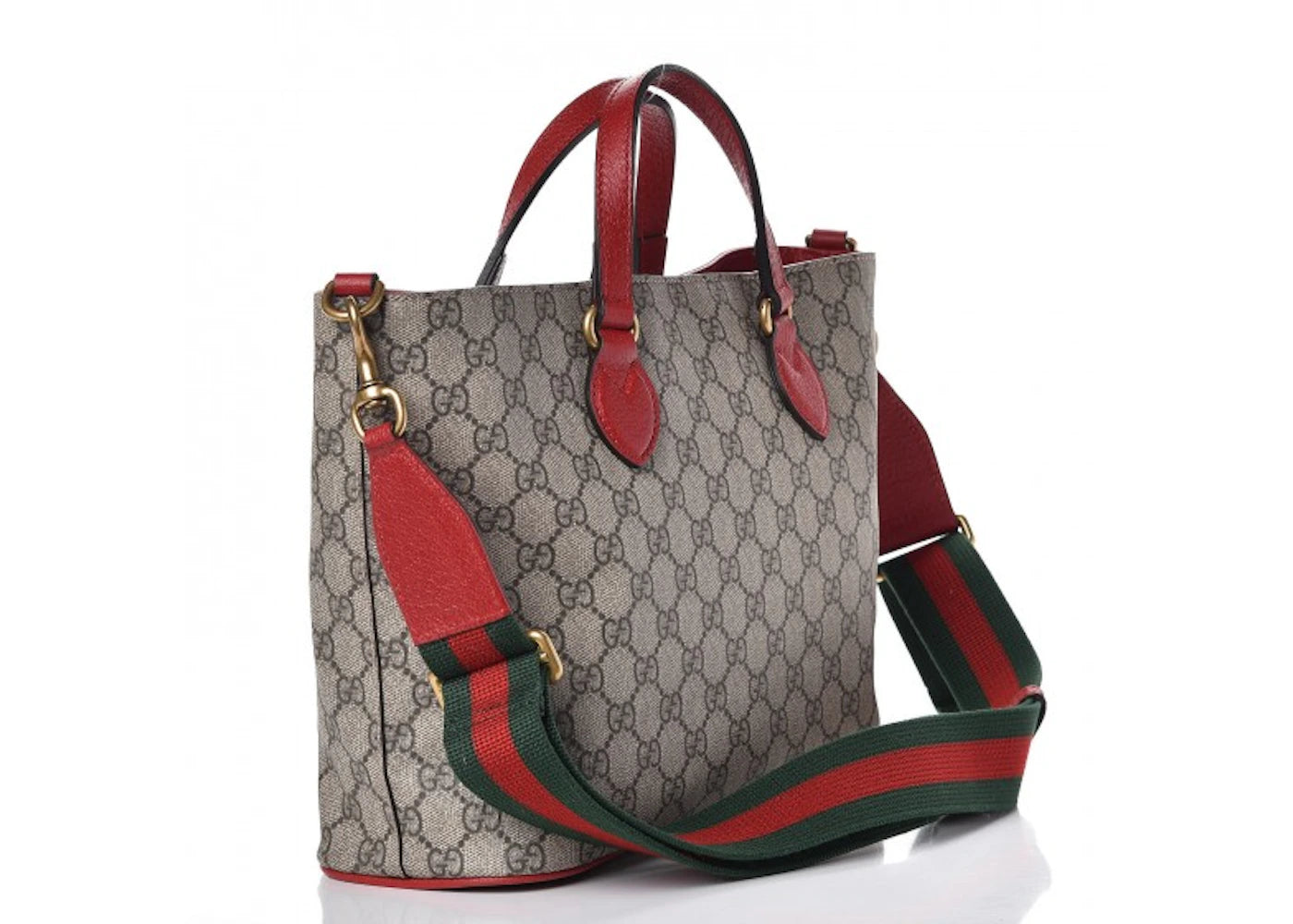 The Gucci Tote Monogram GG Supreme Bosco Red is now available at Side Kicks!