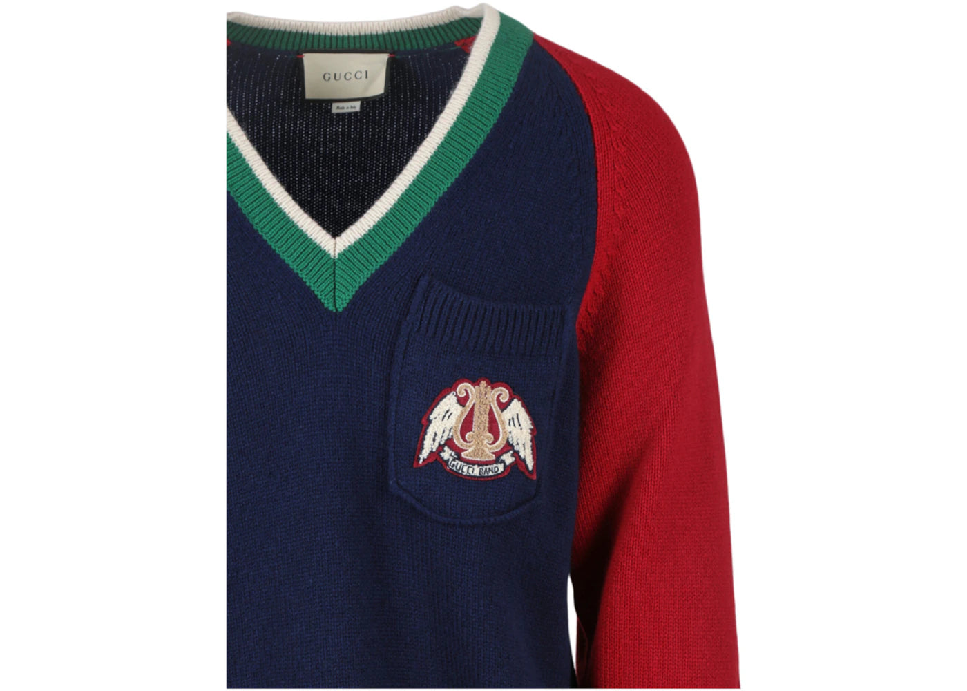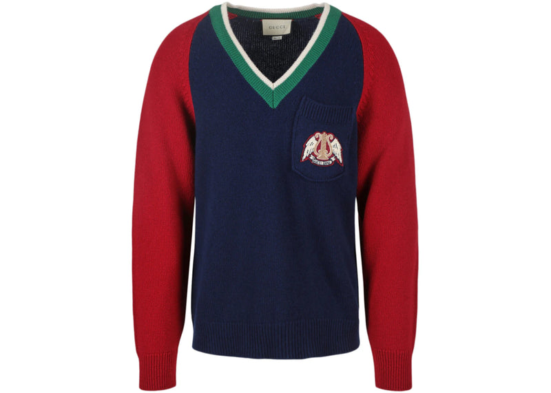 The Gucci V-Neck Wool Sweater Indigo is now available at Side Kicks!
