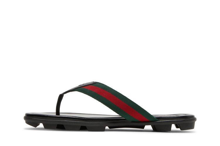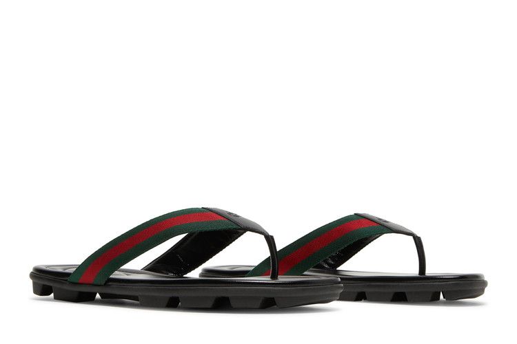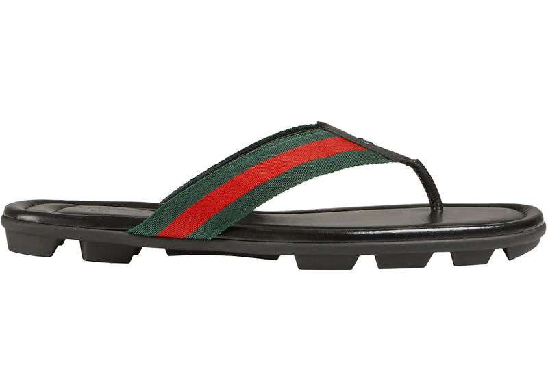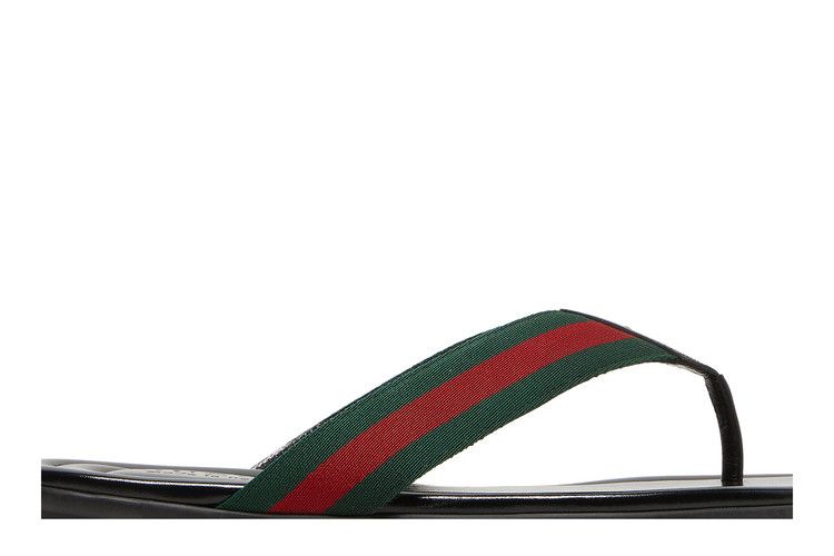 The Gucci Web and Leather Thong Sandal Black Leather is now available at Side Kicks!