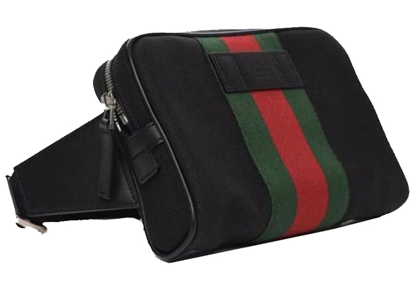 The Gucci Web Belt Stripe Fanny Pack Black is now available at Side Kicks!