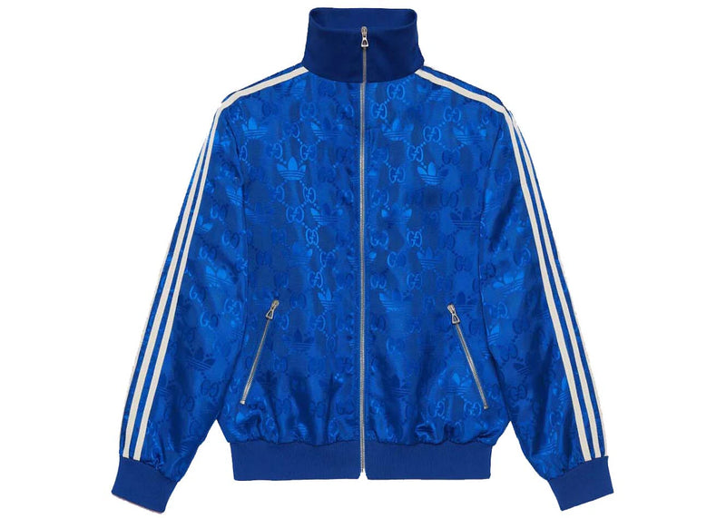 The Gucci x adidas GG Trefoil Jacquard Jacket Cobalt Blue is now available at Side Kicks!