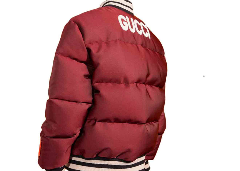 The Gucci x MLB 2022 Padded Satin Jacket with Giants Patch Bordeaux is now available at Side Kicks!