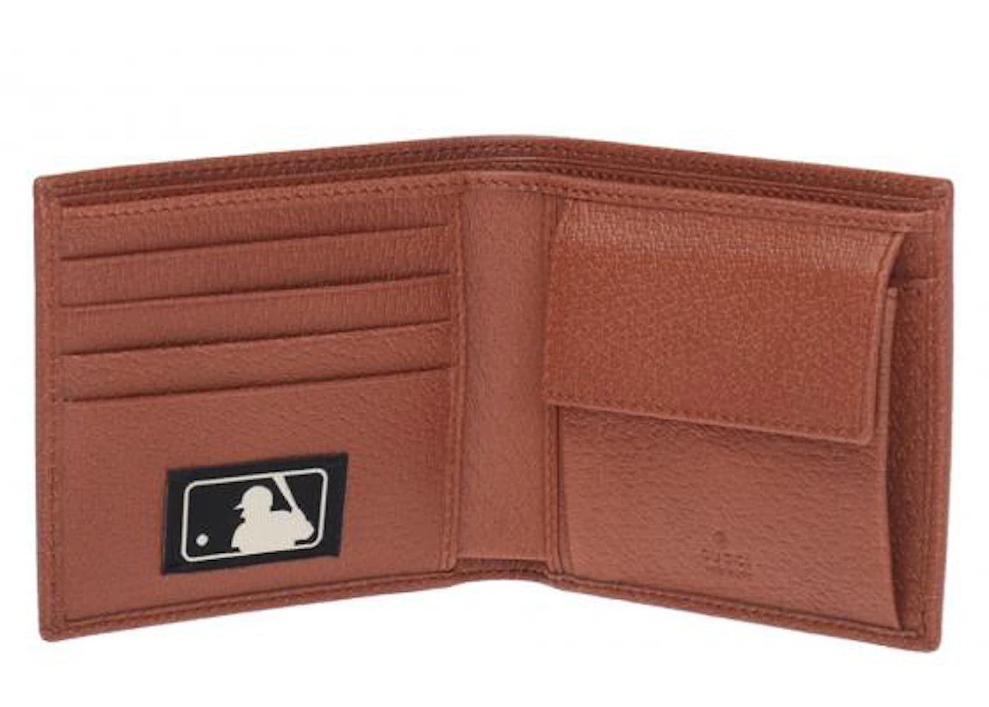 The Gucci x MLB New York Yankees Patch GG Wallet Beige/Brick Red is now available at Side Kicks!