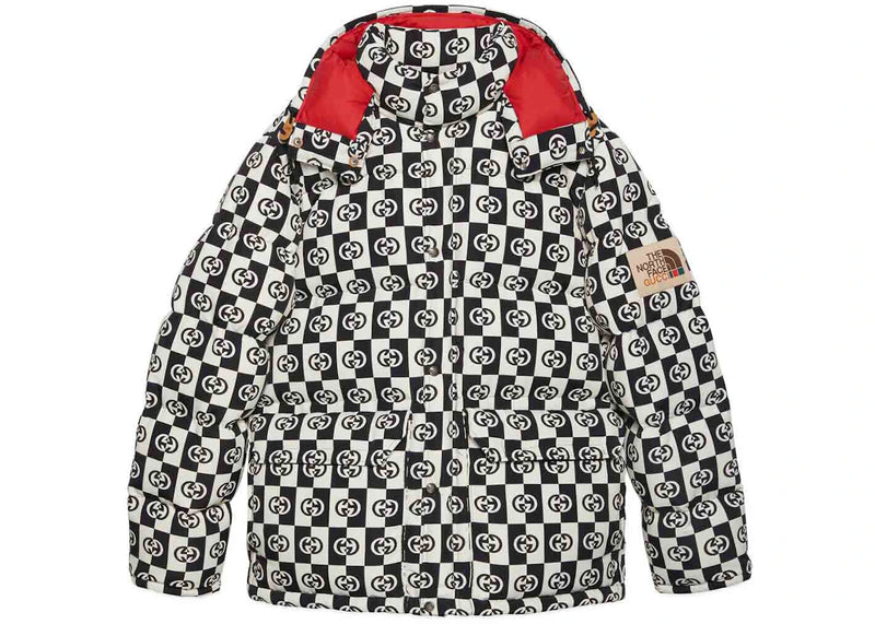 The Gucci x The North Face Down Jacket Ivory/Black Checkered is now available at Side Kicks!