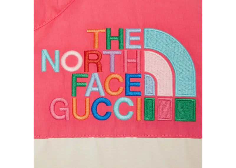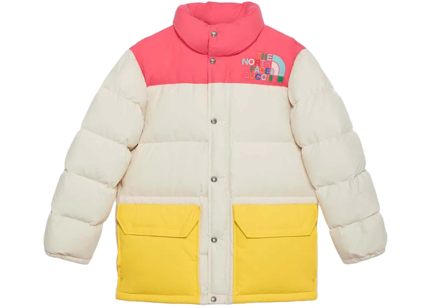 The Gucci x The North Face Down Jacket Ivory/Dark Pink/Yellow is now available at Side Kicks!