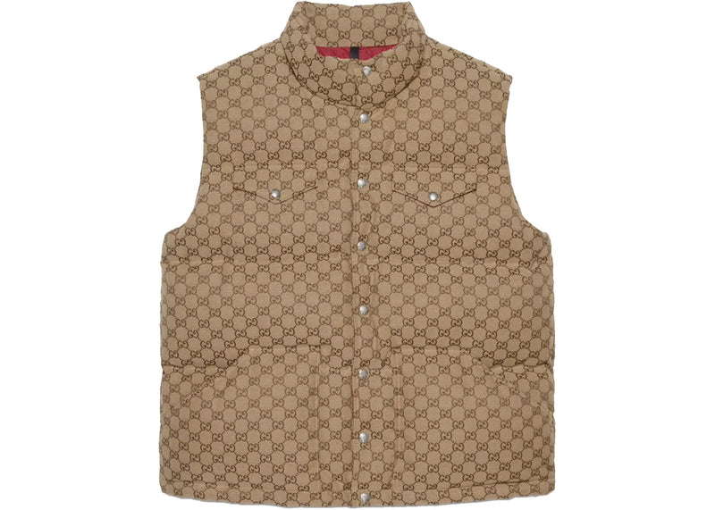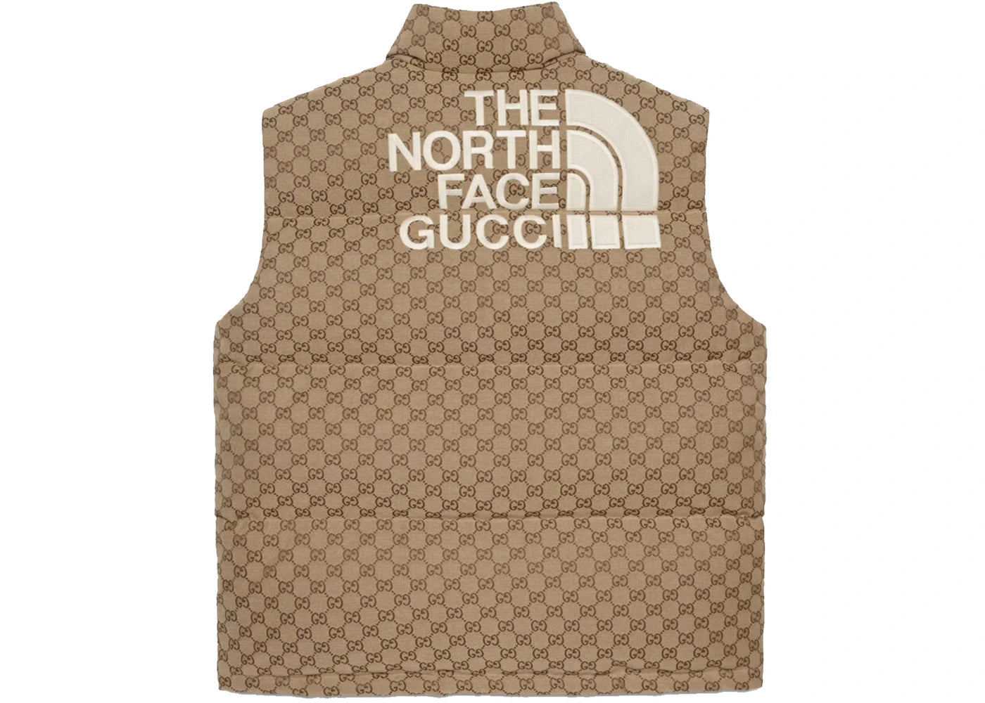 The Gucci x The North Face Down Vest Beige/Ebony is now available at Side Kicks!