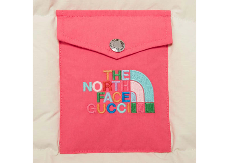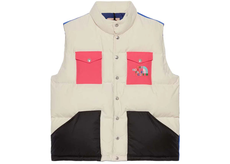 The Gucci x The North Face Down Vest White/Dark Pink/Black/Blue is now available at Side Kicks!