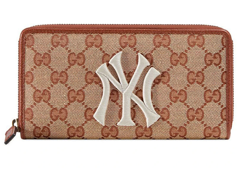 Gucci Zip Around Wallet NY Yankees Patch GG Beige/Brick Red