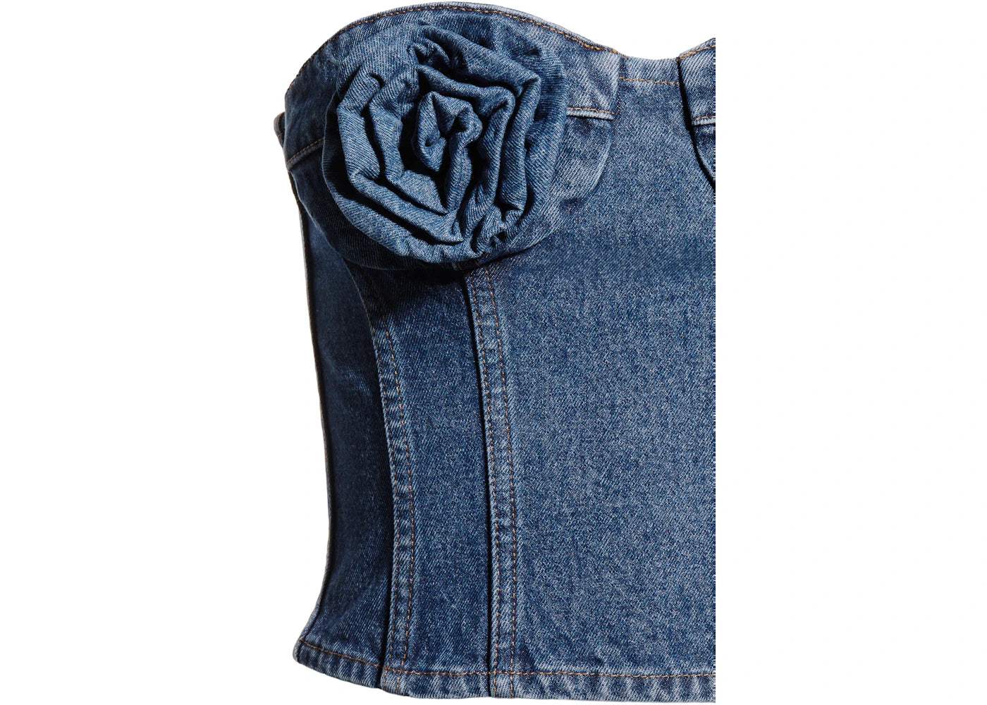 The H&M x Magda Butrym Denim Bustier Top with Rose Appliques Denim Blue is now available at Side Kicks!