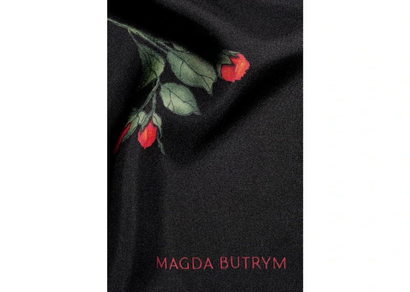 The H&M x Magda Butrym Printed Silk Scarf Black/Roses is now available at Side Kicks!