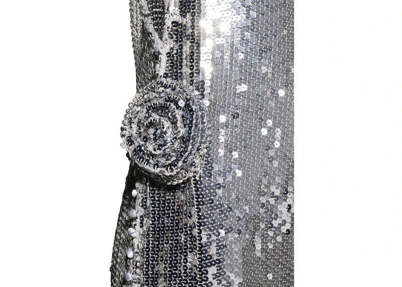 The H&M x Magda Butrym Sequined Maxi Dress with Rose Applique Silver-Colored is now available at Side Kicks!