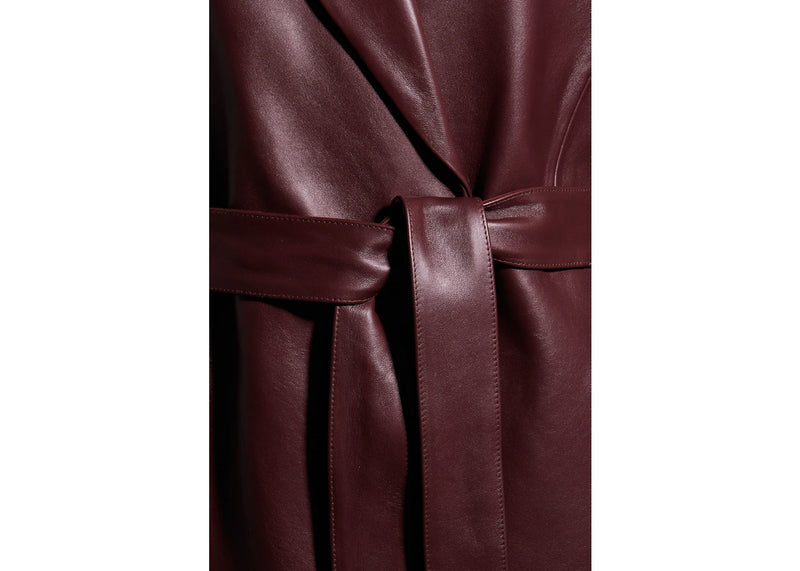 The H&M x Magda Butrym Tie-Belt Leather Coat Burgundy is now available at Side Kicks!
