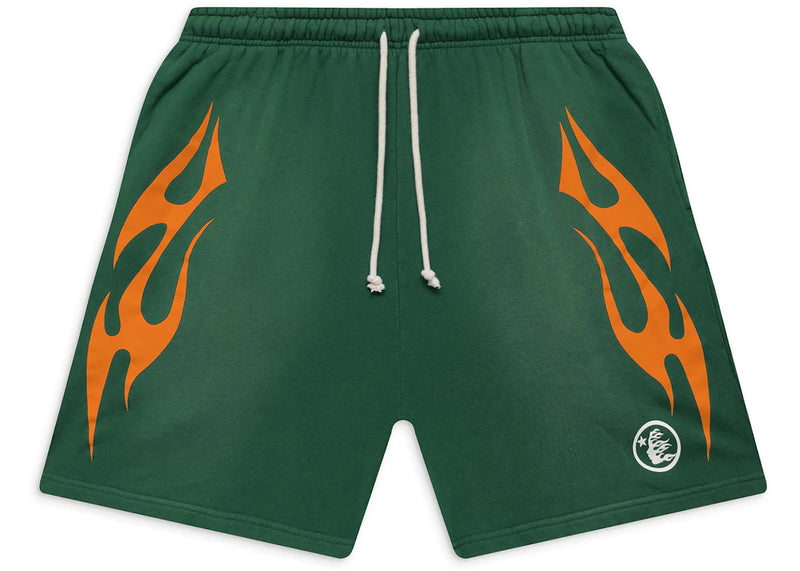 The Hellstar Flame Shorts Green is now available at Side Kicks!
