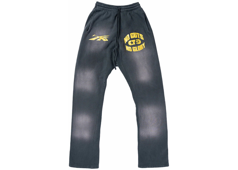 The Hellstar No Guts No Glory Flare Bottom Sweatpants Midnight Dye Black is now available at Side Kicks!