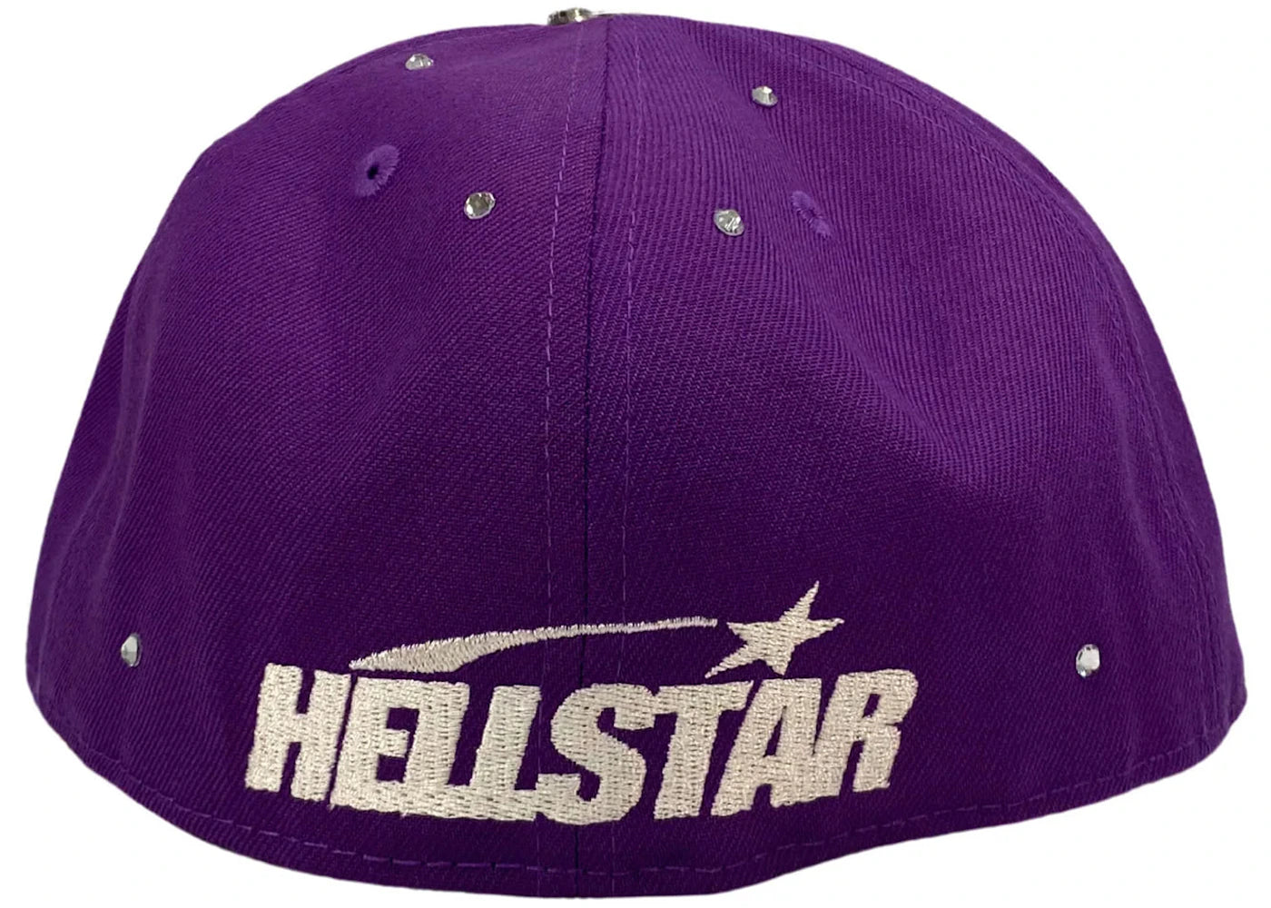 The Hellstar OG Logo Rhinestones 59Fifty Fitted Hat Purple is now available at Side Kicks!