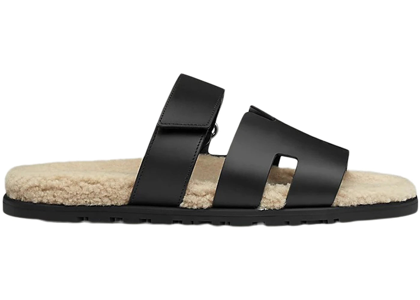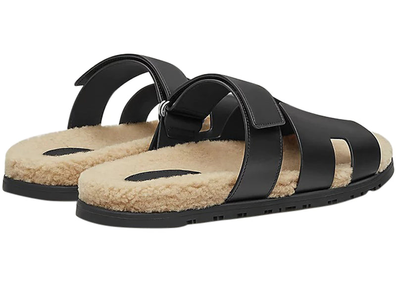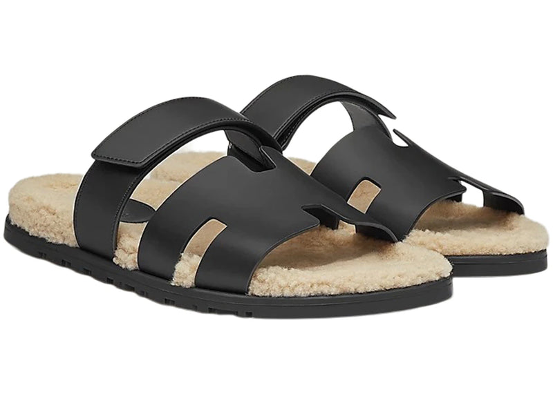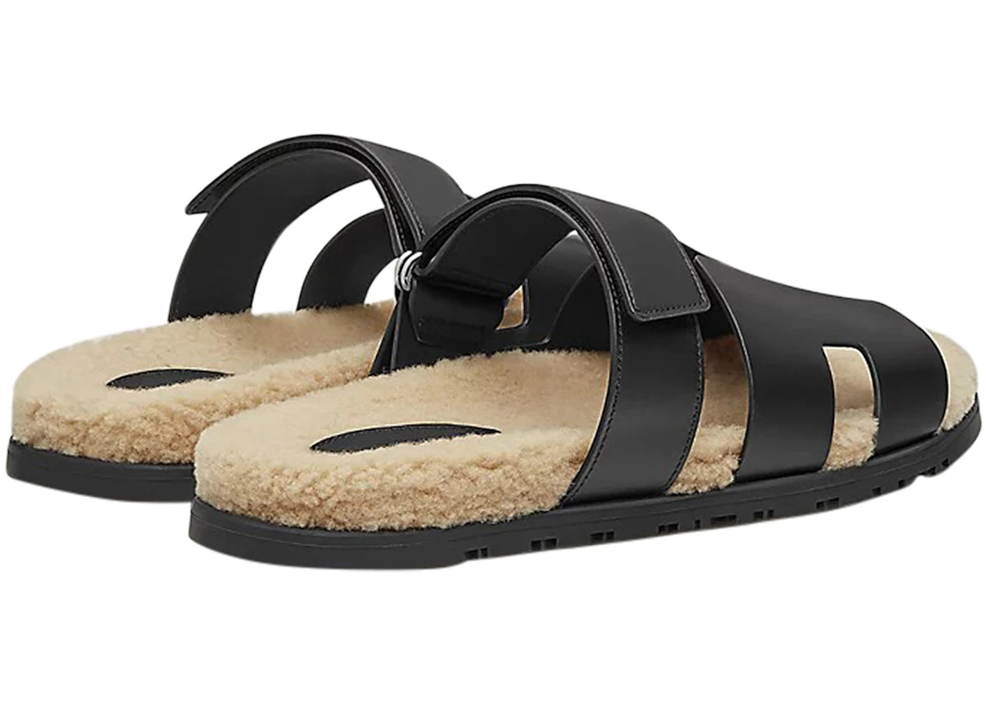 Hermes Chypre Sandal Noir Leather Woolskin (M)