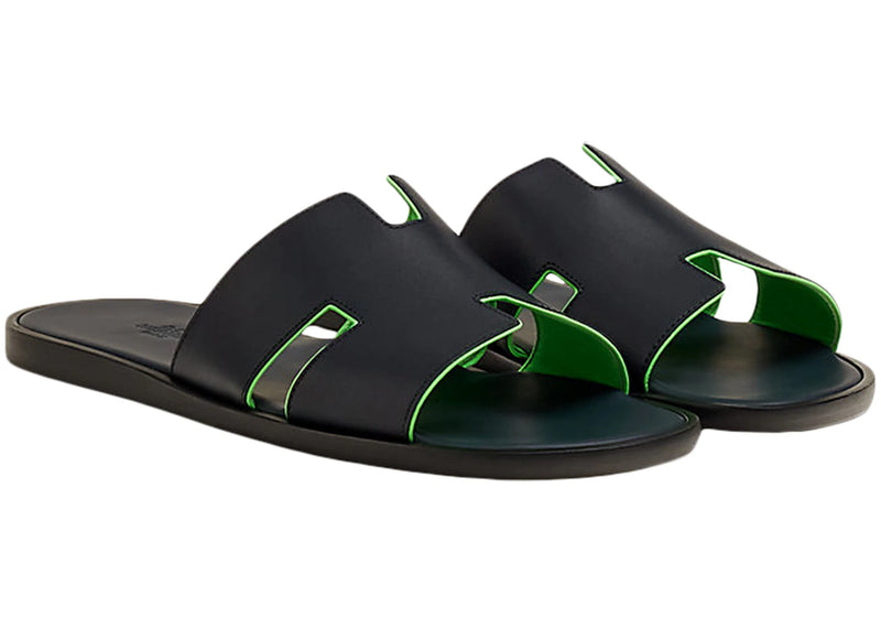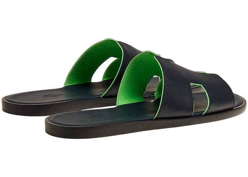 Hermes Izmir Sandal Marine Vert Fluo Calfskin Nappa Leather