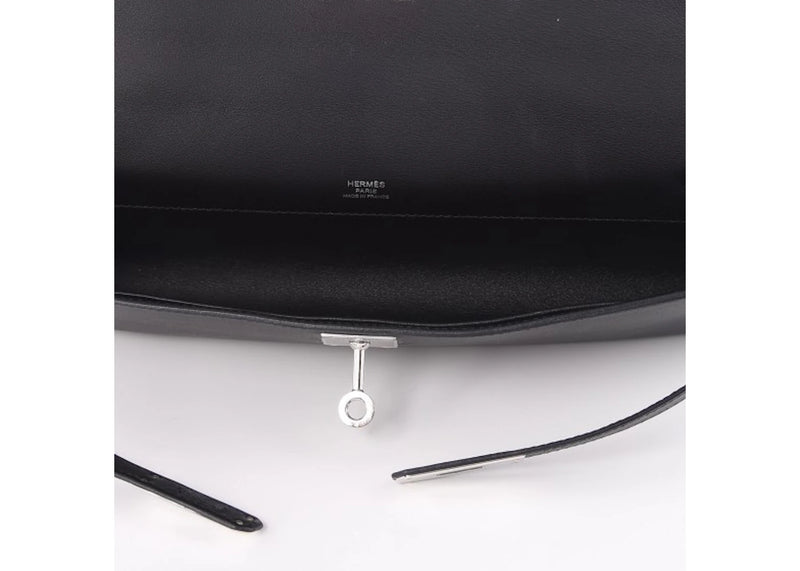 The Hermes Kelly Cut Pochette Swift Palladium Black is now available at Side Kicks!