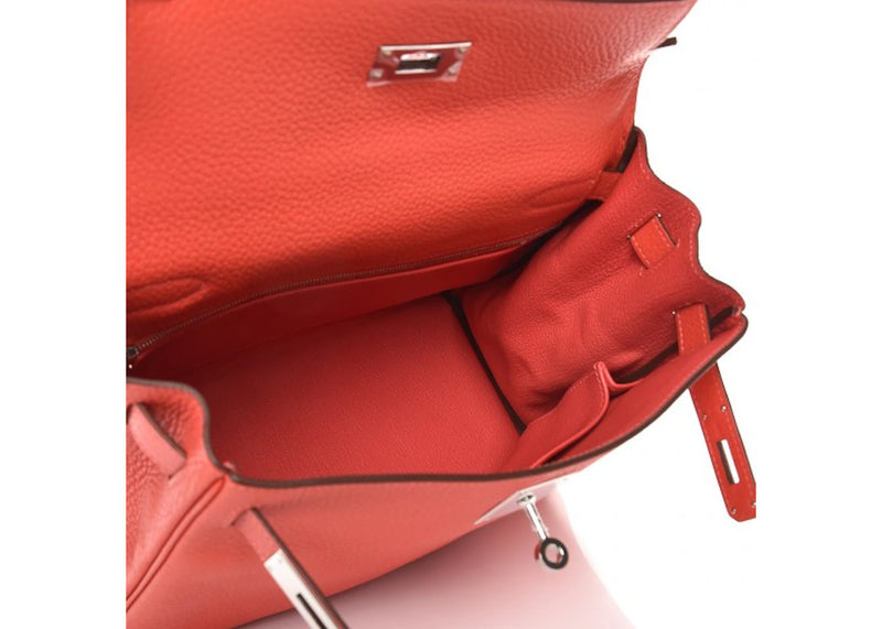 Hermes Kelly Retourne Taurillon Clemence Palladium 28 Rouge Pivoine