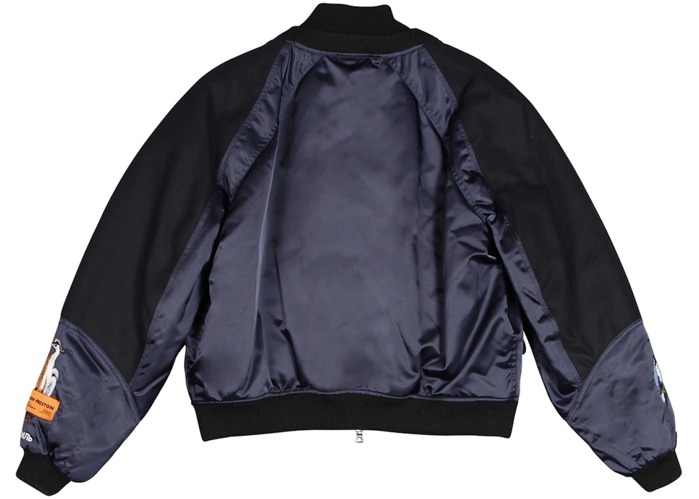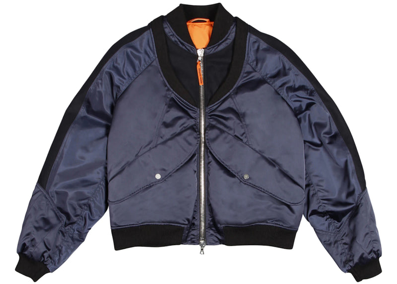 The Heron Preston Herons 2 Fabrics Bomber Jacket Dark Blue is now available at Side Kicks!