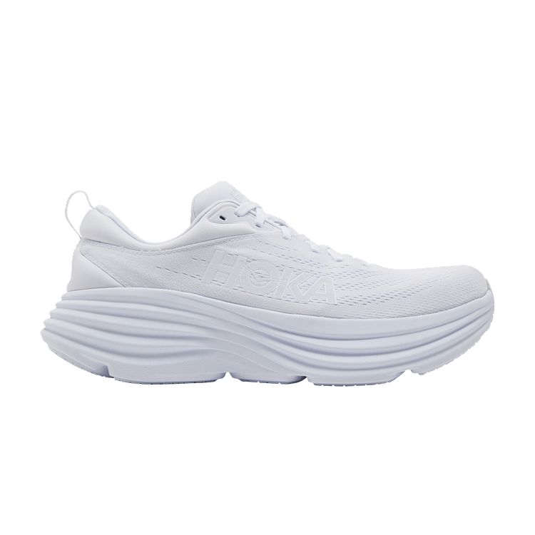 The Hoka One One Bondi 8 Triple White is now available at Side Kicks!