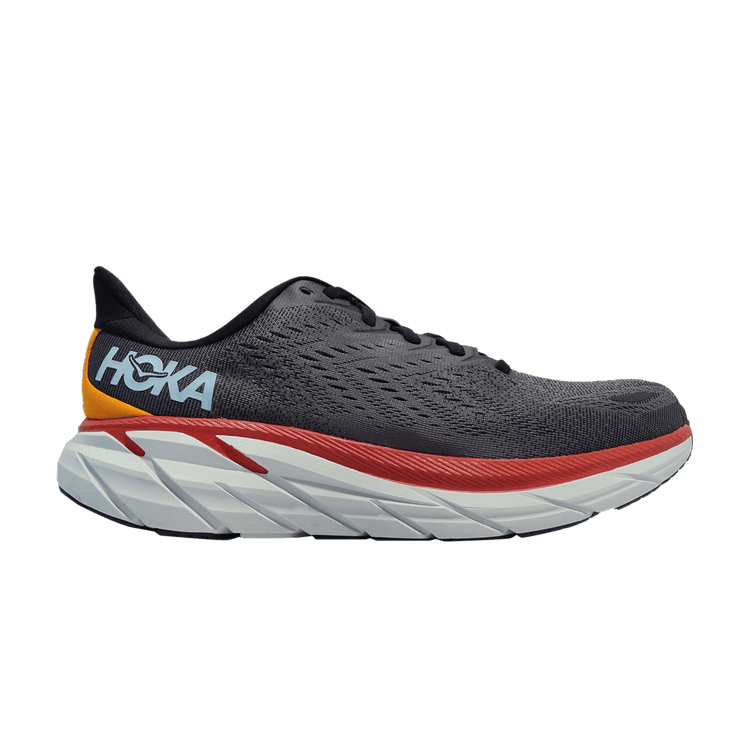 The Hoka One One Clifton 8 Anthracite Castlerock Red (Wide) is now available at Side Kicks!