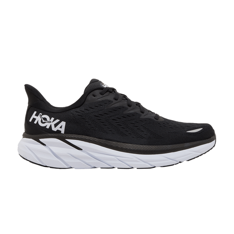 The Hoka One One Clifton 8 Black White is now available at Side Kicks!