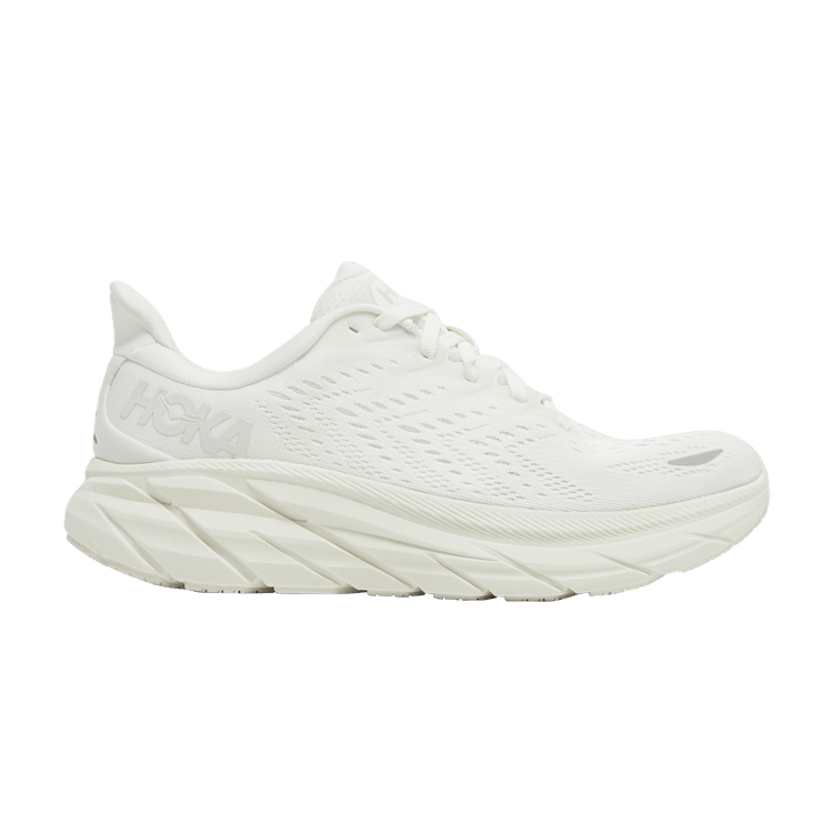 The Hoka One One Clifton 8 White (Women's) is now available at Side Kicks!