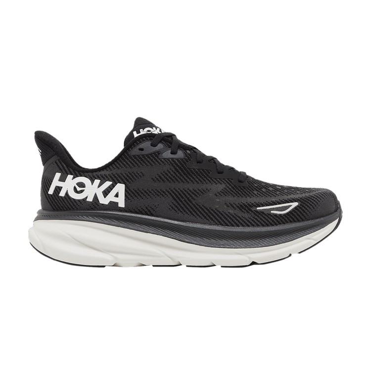 The Hoka One One Clifton 9 Black White features a lightweight foam midsole for responsive cushioning and a breathable engineered mesh upper. Its extended heel crash pad improves stability and smooth transitions. The black and white colorway offers a clean, versatile look. Released on February 19, 2023, the Hoka One One Clifton 9 Black White is available now at Side Kicks.