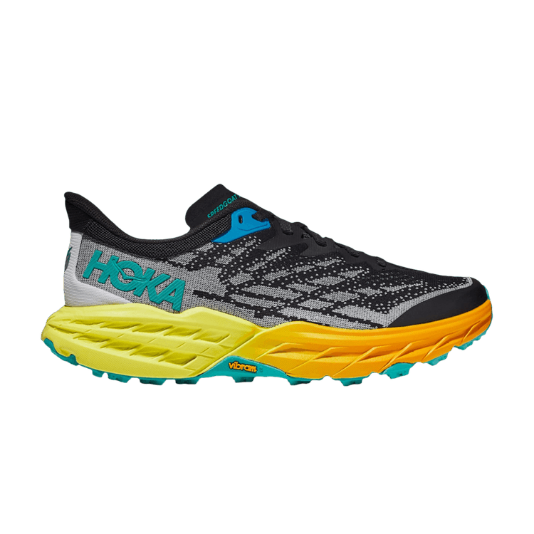 The Hoka One One Speedgoat 5 Black Evening Primrose is now available at Side Kicks!