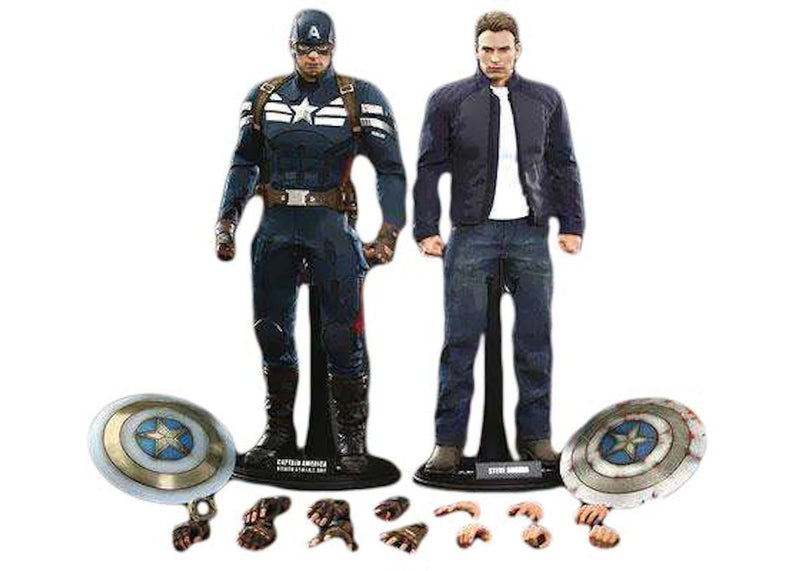 Hot Toys Marvel Movie Masterpiece Captain America & Steve Rogers Figure Set