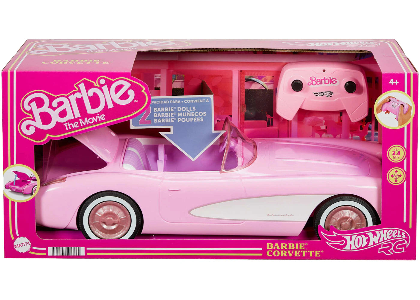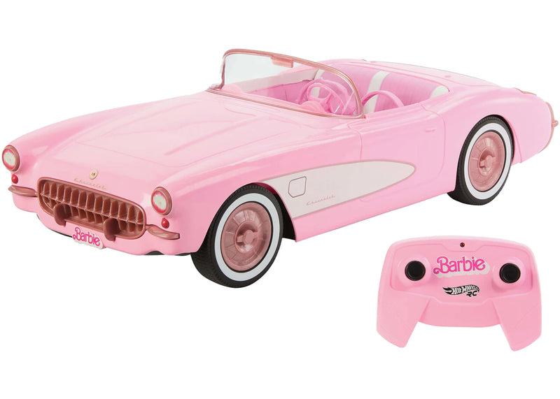 The Hot Wheels RC Barbie The Movie Barbie Corvette is a battery-powered remote control car based on the 1956 Corvette Stingray from the comedy/fantasy film "Barbie."