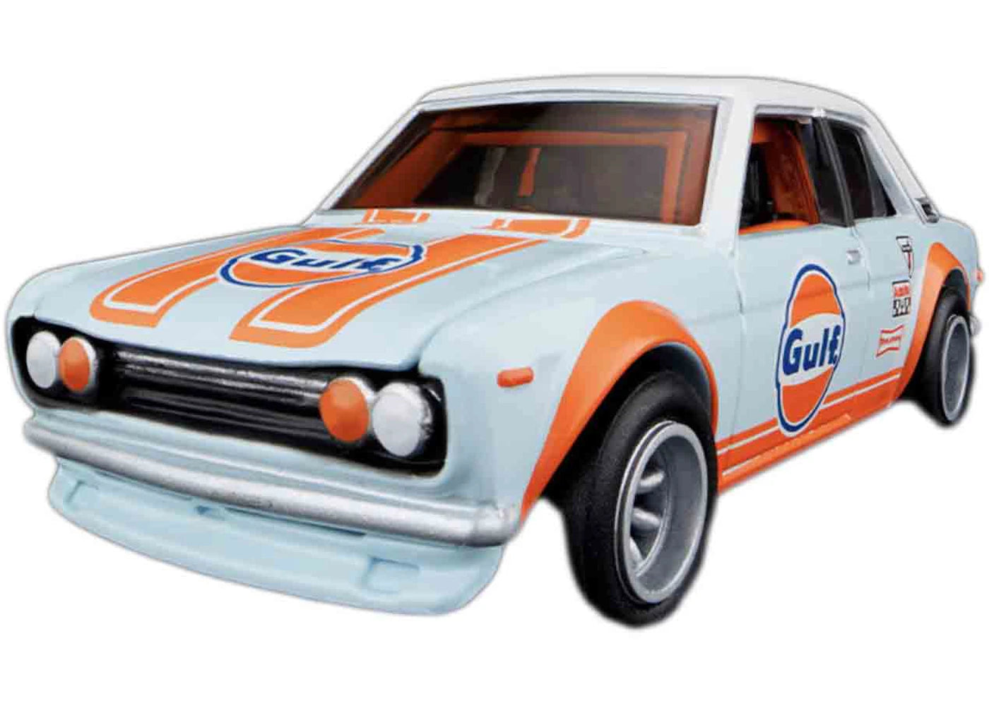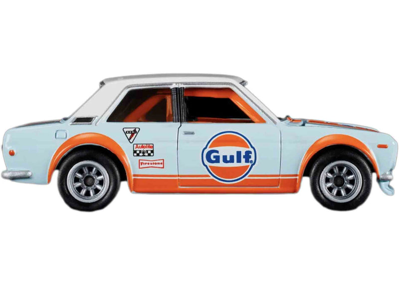 The Hot Wheels RLC Exclusive Datsun 510 features the iconic Datsun 510 with the "Gulf" logo, finished with an orange and sky blue wrap. The Hot Wheels RLC Exclusive Datsun...