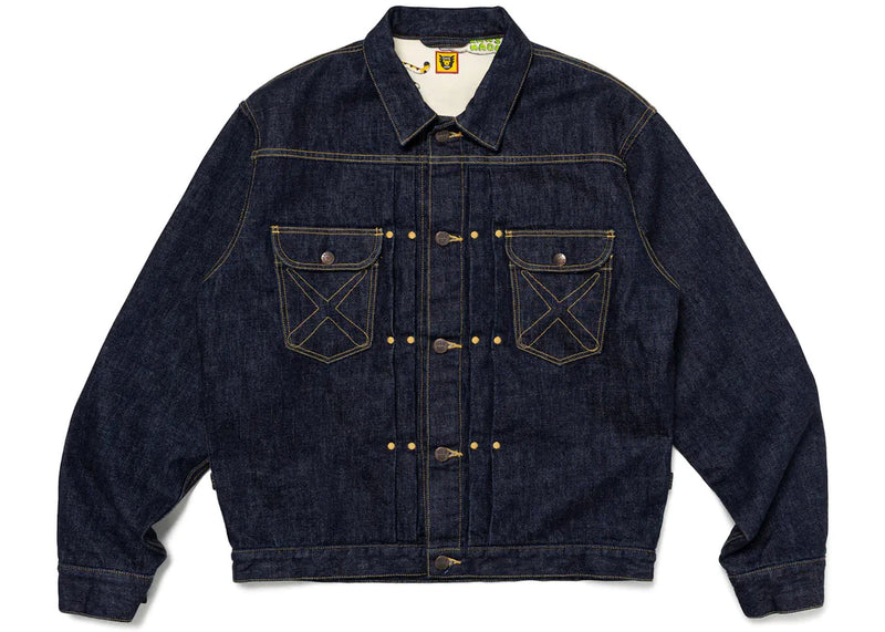 The Human Made x KAWS Denim Work Jacket Indigo is now available at Side Kicks!