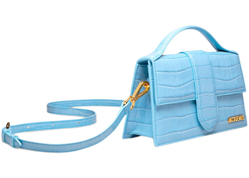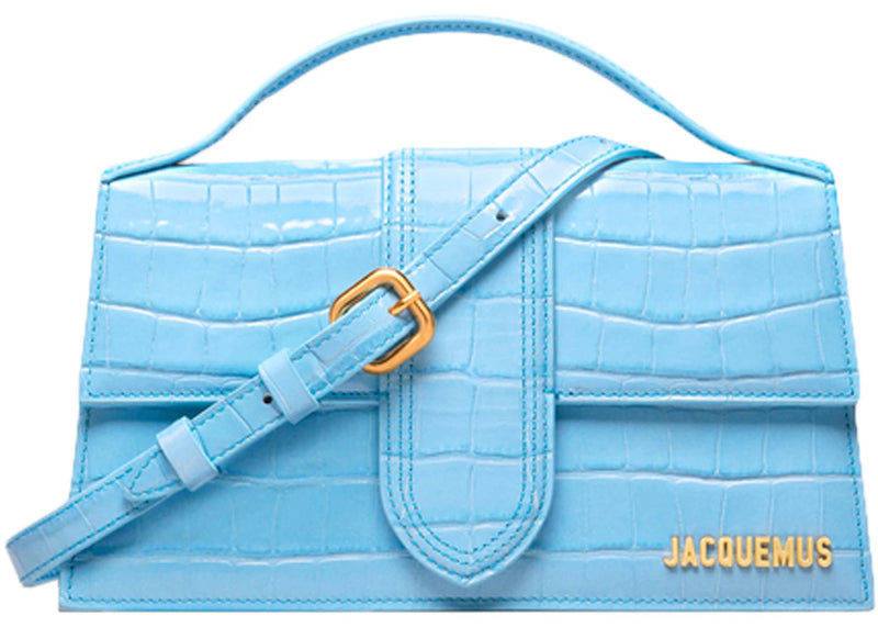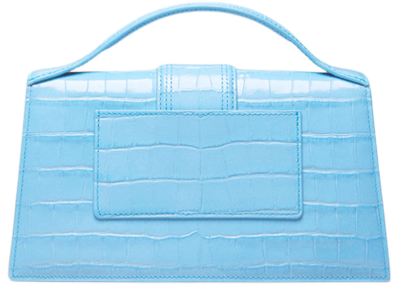 The Jacquemus Le Grand Bambino Crossbody Flap Bag Croco Embossed Gradient Blue is now available at Side Kicks!