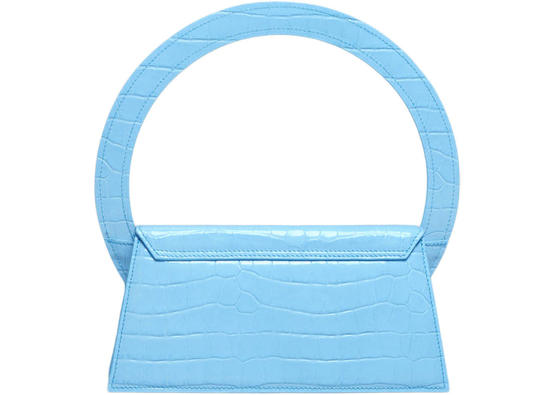 Jacquemus Le Sac Rond Circle Purse Croco Embossed Blue
