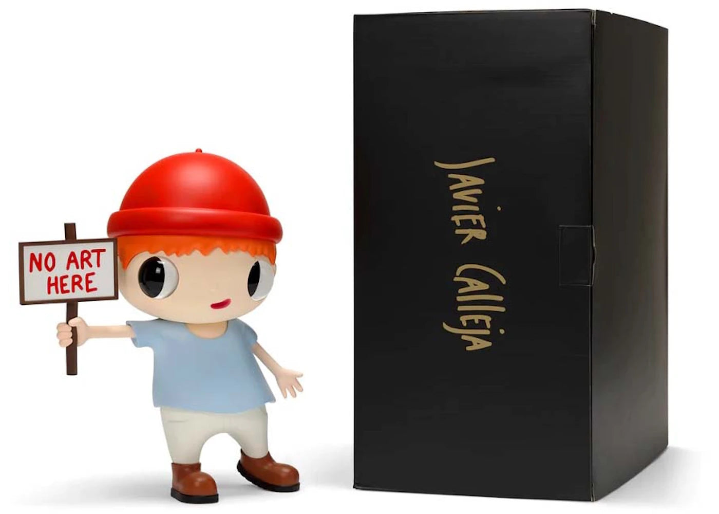 Spanish artist Javier Calleja teamed up with Medicom to release a limited edition miniature version of his "No Art Here" Sculpture. The miniature version of the sculpture measures 11.8 inches tall and depicts a large eyed orange hair character holding a sign saying "No Art Here", the character is wearing brown shoes, light color pants, blue shirt and red beanie. Please note: digital tokens and/or NFTs related to this product are not able to be transferred as a part of the transaction.