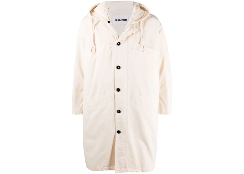 The Jil Sander Oversized Hooded Parka Coat Beige is now available at Side Kicks!