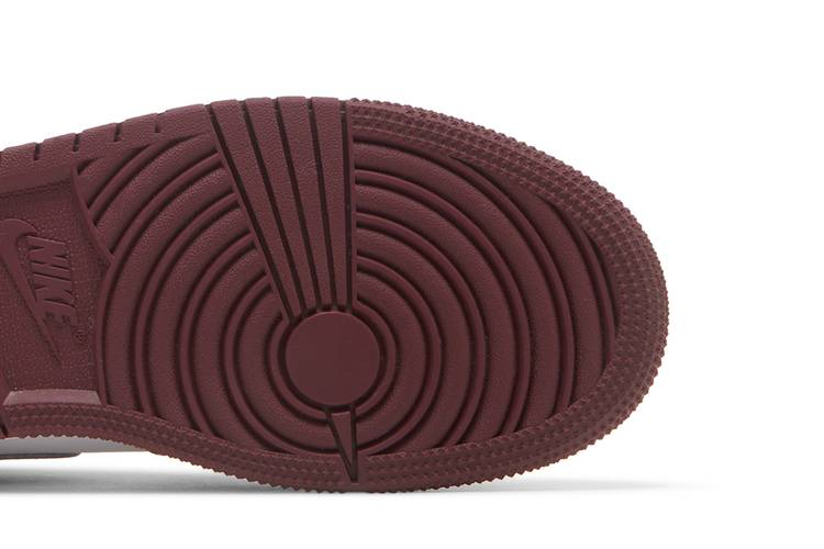 The Air Jordan 1 Low Bordeaux GS features a predominantly leather construction with a white upper and dark red overlays. Perforations are located at the forefoot for breathability. The shoe...