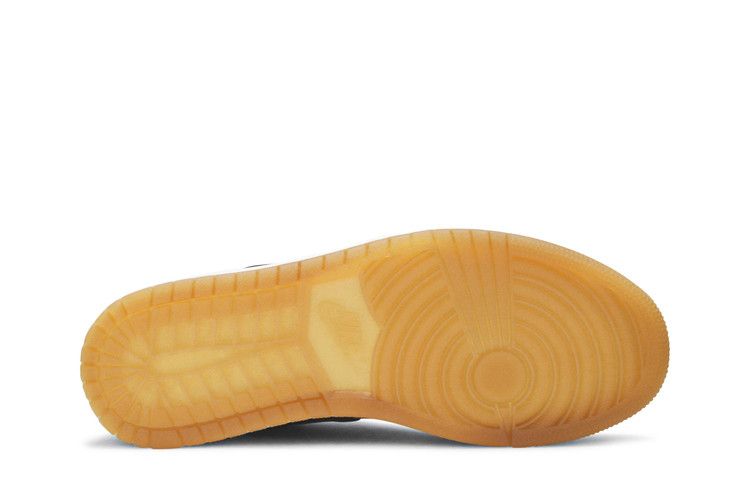 The Jordan 1 Low Quai54 (2020) has a Sail, Team Orange, and Baroque Brown leather upper. Team Orange accents appear on the Nike insignias, heel lettering, and throat, with alternating...