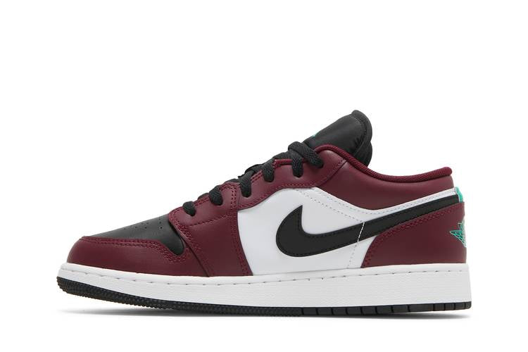 The Air Jordan 1 Low SE Dark Beetroot Roma Green (GS) features a classic leather upper with suede panels on the toe and heel. This sneaker comes in a dark...