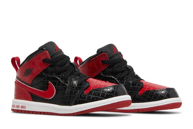 The Jordan 1 Mid Black + Red = Bred (TD) is now available at Side Kicks!