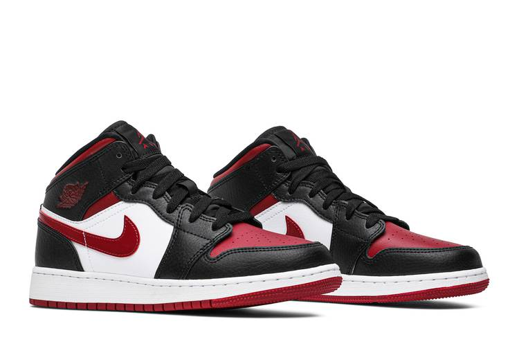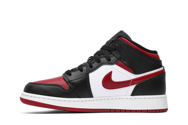 The Air Jordan 1 Mid GS 'Noble Red' is inspired by the 2018 'Bred Toe' colorway of the high-top version. It features a white leather quarter panel, black leather overlays,...